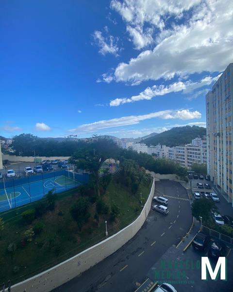 Apartamento, sala, 02 (dois) quartos, banheiro social com box blindex, cozinha e área de serviço. Condomínio possui estacionamento coberto e descoberto, quadra de esporte, salão de festas, parquinho e mercadinho. Fácil acesso à ponte Rio/Niterói, condução e comércio nas proximidades.