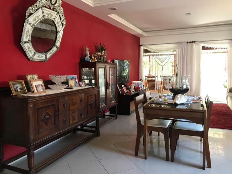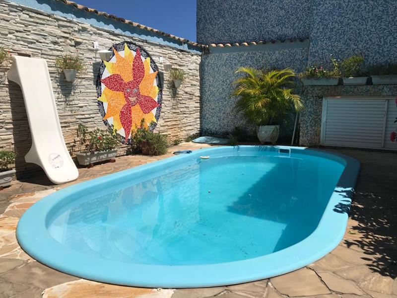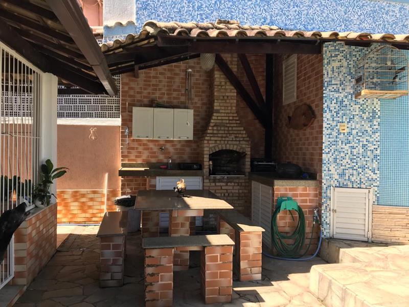 A área externa conta com quintal, área gourmet com churrasqueira, piscina e garagem para 02 (dois) carros. O imóvel ainda possui um amplo terraço coberto com telhado colonial (140 m²), equipado com área de serviço, armários embutidos, banheiro e churrasqueira.