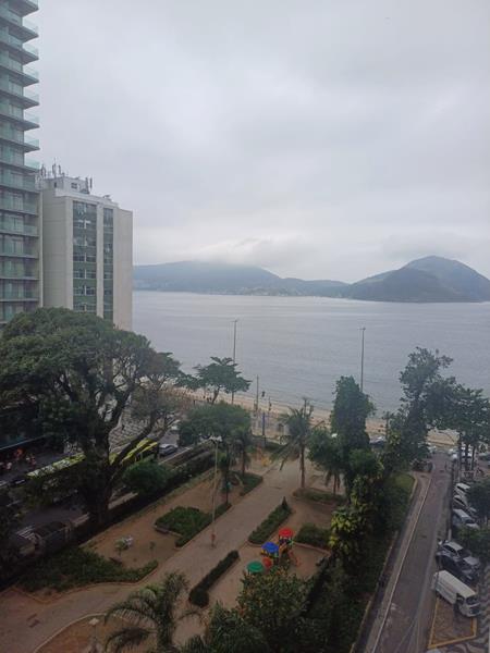 Apartamento no Ingá com vista total para a praia, sala, 02 (dois) quartos, banheiro social, cozinha com armário, área de serviço e dependência completa. O condomínio possui portaria 24 horas, salão de festas e bicicletário. Excelente localização, em frente à Praça César Tinoco.