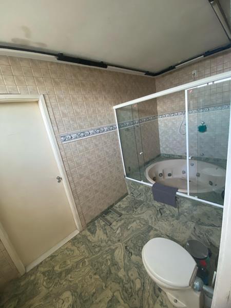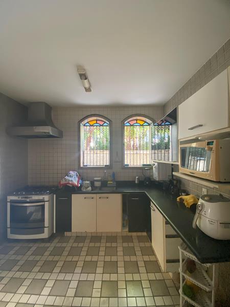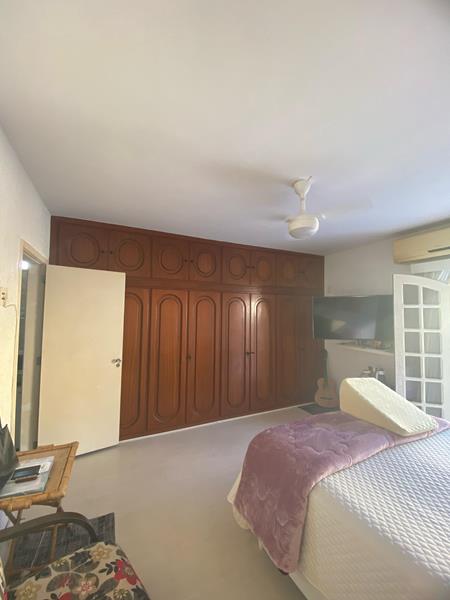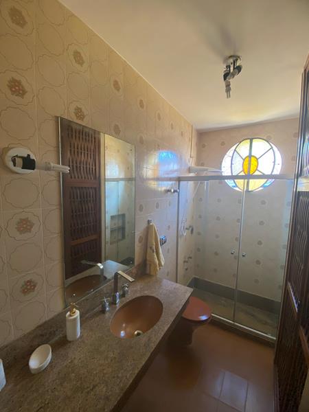 O 1º pavimento possui 02 (dois) quartos (sendo 01 suíte), ampla sala em 02 (dois) ambientes com elevador para o andar superior (biblioteca), banheiros com box blindex e armários, ampla cozinha com armários, copa e área de serviço. A área externa conta com quintal, piscina, churrasqueira, garagem para 04 (quatro) carros e um anexo com 02 (dois) quartos de serviço e 01 (um) banheiro.
