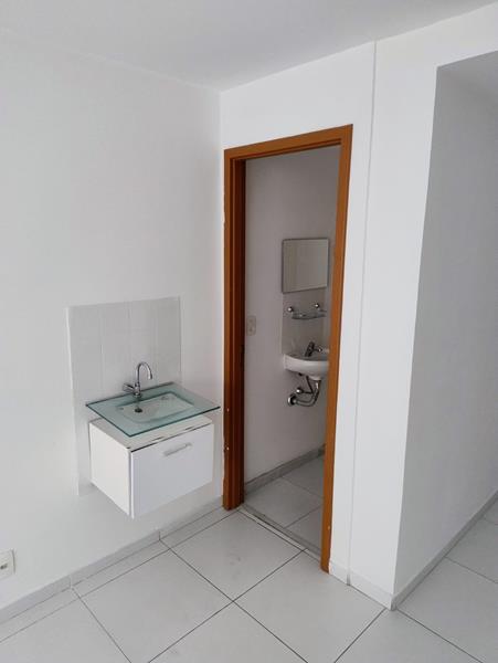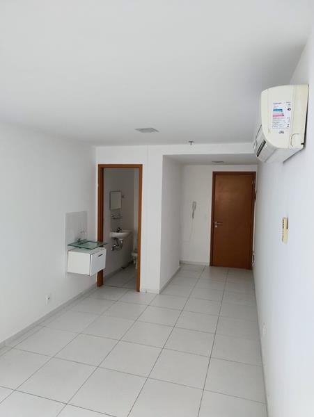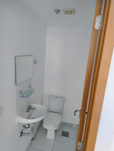 Sala comercial equipada com ar-condicionado split e banheiro privativo.