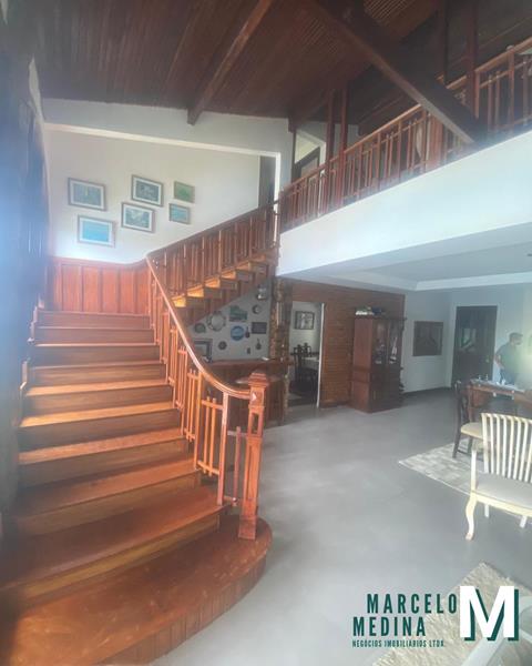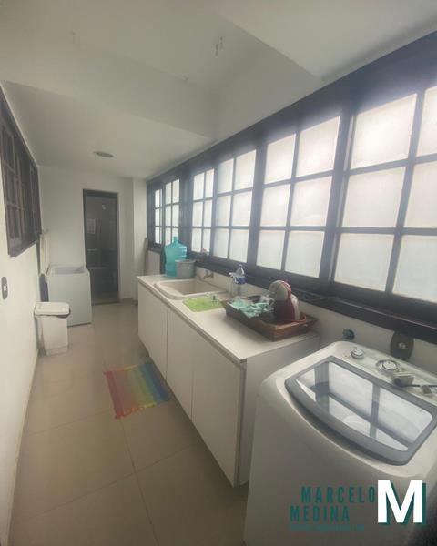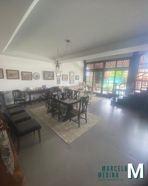 1º Pavimento: Ampla sala em 02 (dois) ambientes com lavabo, bar e adega, lareira, ampla cozinha, copa, despensa, área de serviço, dependência completa, garagem para 02 (dois) carros, área externa privativa com quintal, piscina, churrasqueira, sauna e 01 (um) quarto para depósito.
