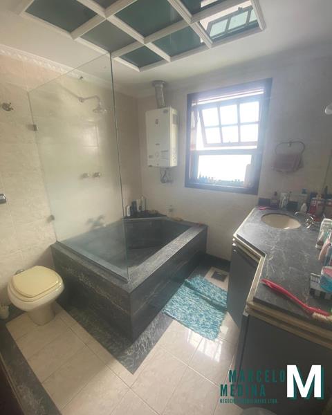 2º Pavimento: Mezanino, 03 (três) quartos sendo 01 (um) suíte com closet e armários, hidromassagem, box blindex e varanda e 01 (um) banheiro social com armário e box blindex.